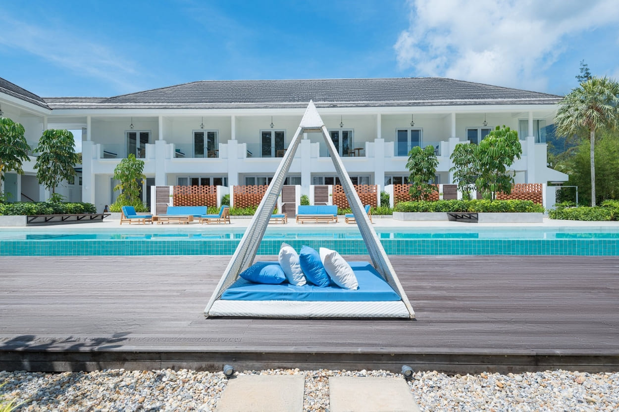 The infinity pool is one of Cove 55's clearest visual assets, set to blend with the South China Sea horizon. At 30 metres long, it works for both lap swimming and relaxed dips, while the adjacent Sea Deck and Cove Bar extend the setting into a casual drinks space. |