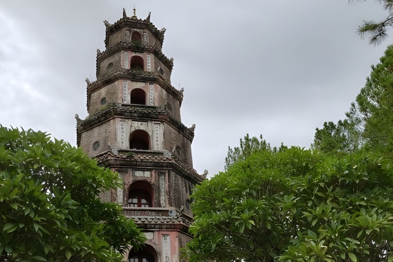 Upon arrival in Hue – Visit Thien Mu Pagoda, perched beside the Perfume River