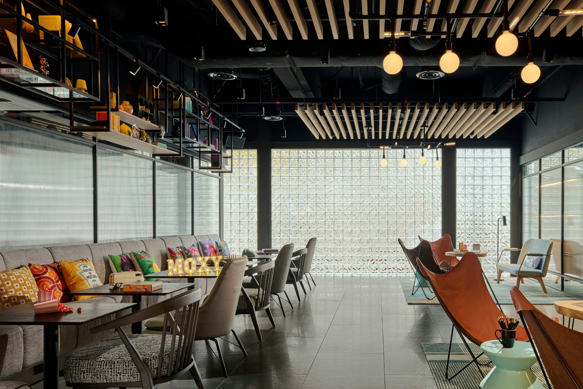 Bar Moxy serves as the hotel’s social hub, offering a relaxed setting for drinks, informal meetings, and casual gatherings. Inspired by the surrounding Chinatown energy, the space encourages interaction, while nearby Petaling Street provides local dining and nightlife experiences beyond the hotel for curious urban travelers seeking atmosphere.