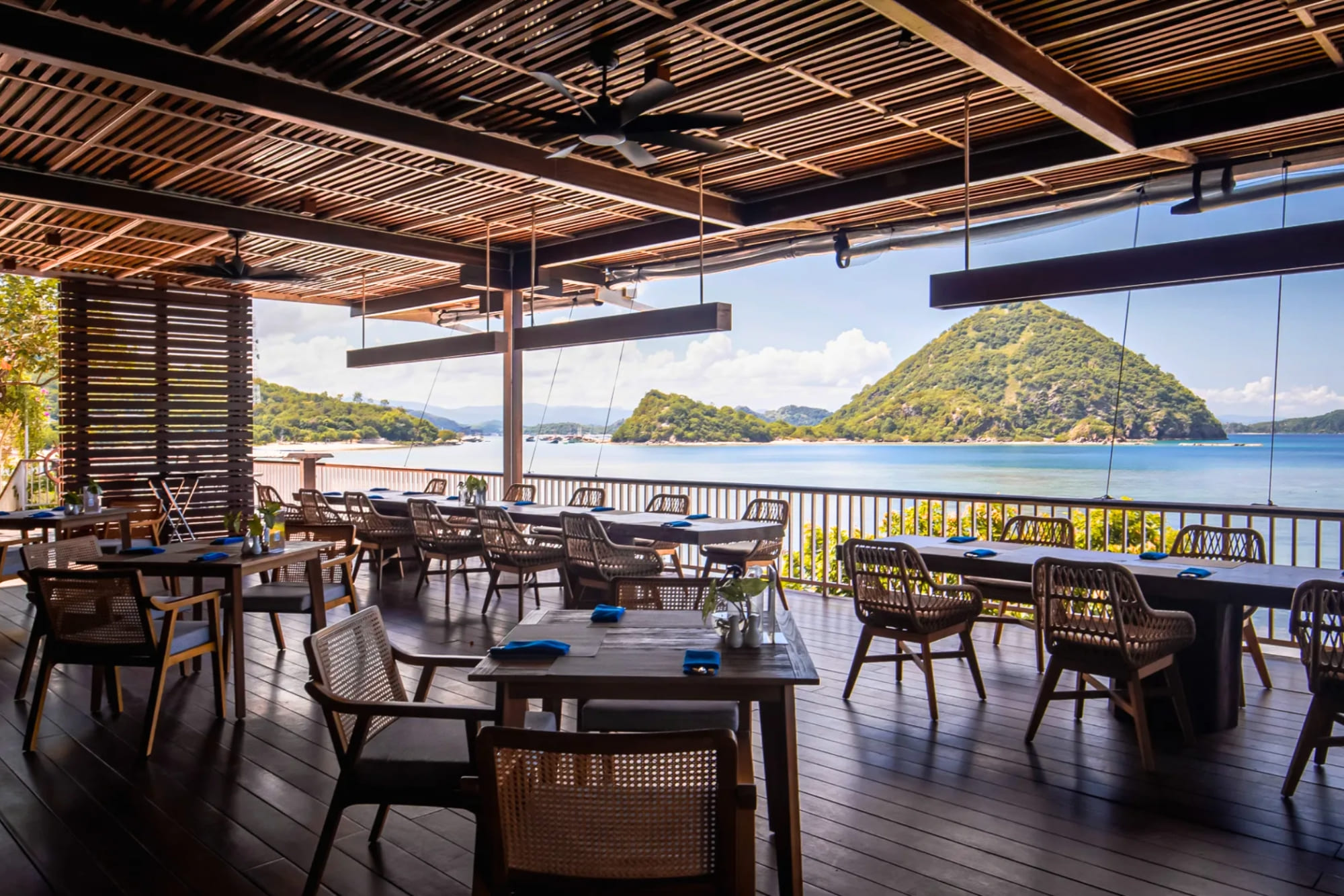 Atlantis On The Rock is Plataran Komodo’s sunset deck set on the rocks at Waecicu Beach, overlooking the Komodo Islands and the resort’s phinisi jetty. Guests sit above the water for Indonesian and Western dishes, fresh seafood, and crafted drinks, turning golden-hour views into relaxed dinners or private celebrations.