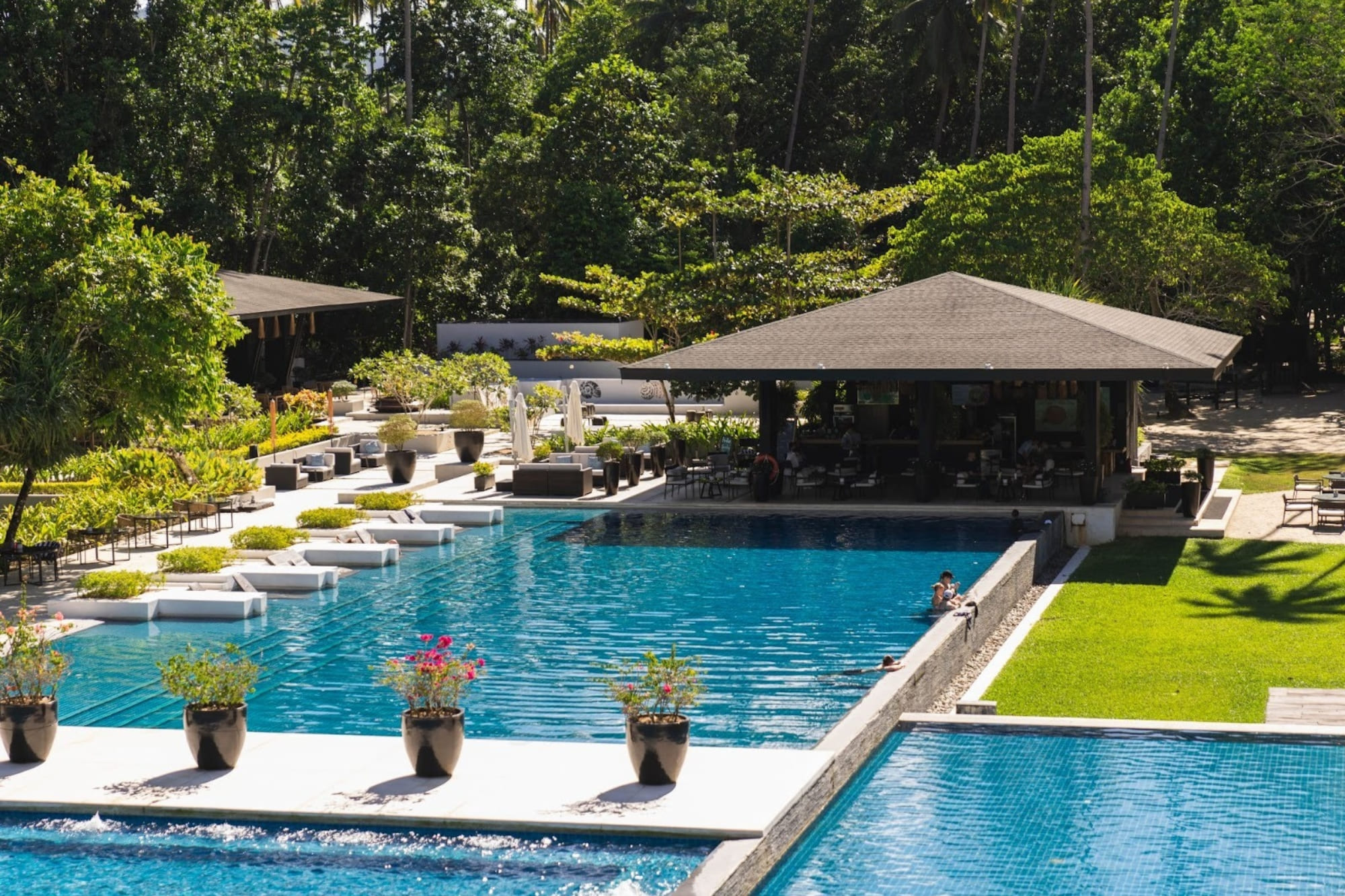 A central swimming pool provides a reliable on-property anchor for downtime. Direct access to the four-kilometer white-sand beach extends the day outdoors, with activity options such as water sports and bamboo biking for guests who prefer an active rhythm. |