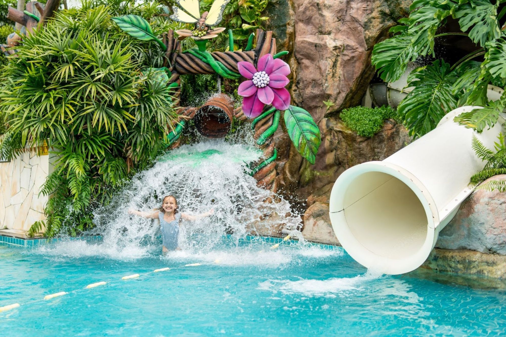 Swimming centres on a natural water swimming pool, with a children’s pool with slides, three water slides, and a splash pad with a water bucket. A water management system keeps pool water in a natural and pristine state, suitable for all swimmers, including young ones. |
