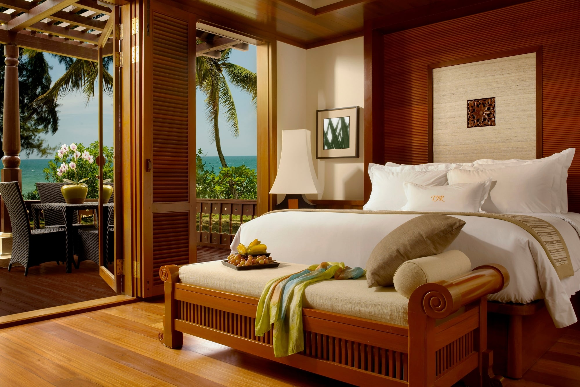 Ground and first-floor rooms with a personal verandah facing the South China Sea and tropical gardens. Average size is 55 square metres. A simple, calm layout supports quiet time indoors and easy movement to the outdoor seating area. |