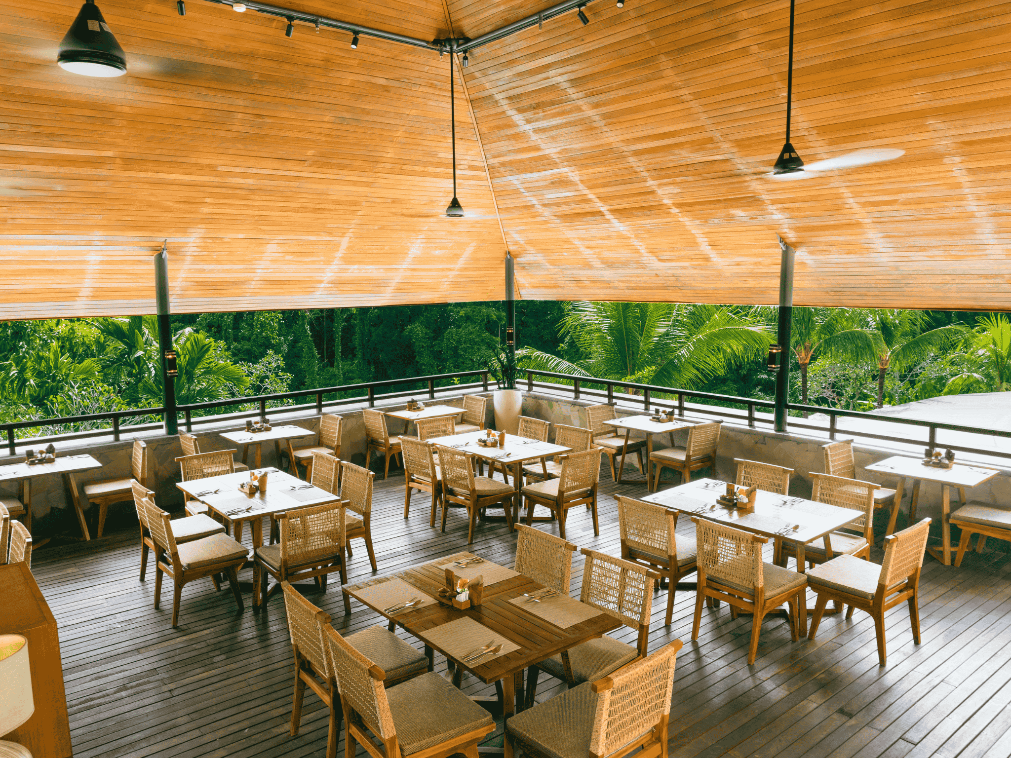 Tall Trees sits near the main pool, serving freshly prepared dishes in a relaxed open-air tropical setting. Each meal is made from local ingredients and reflects Bali’s rich flavors and warm island hospitality throughout.