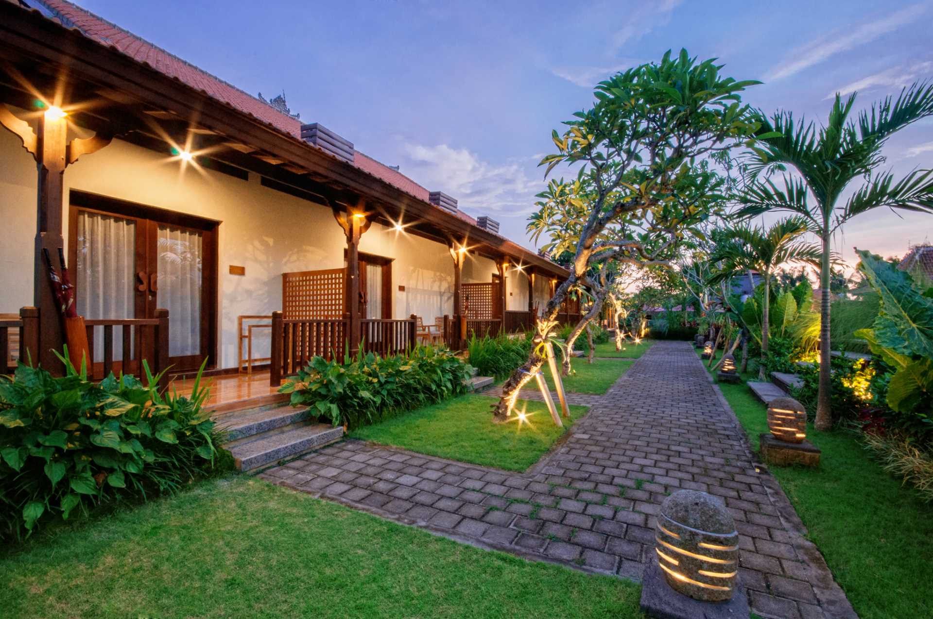 The resort provides 19 comfortable room options, including Superior, Deluxe, Deluxe Balinese, and Royal Balinese Suites. All rooms offer stunning views of the lush tropical gardens, ensuring your ultimate privacy and a warm, friendly atmosphere.