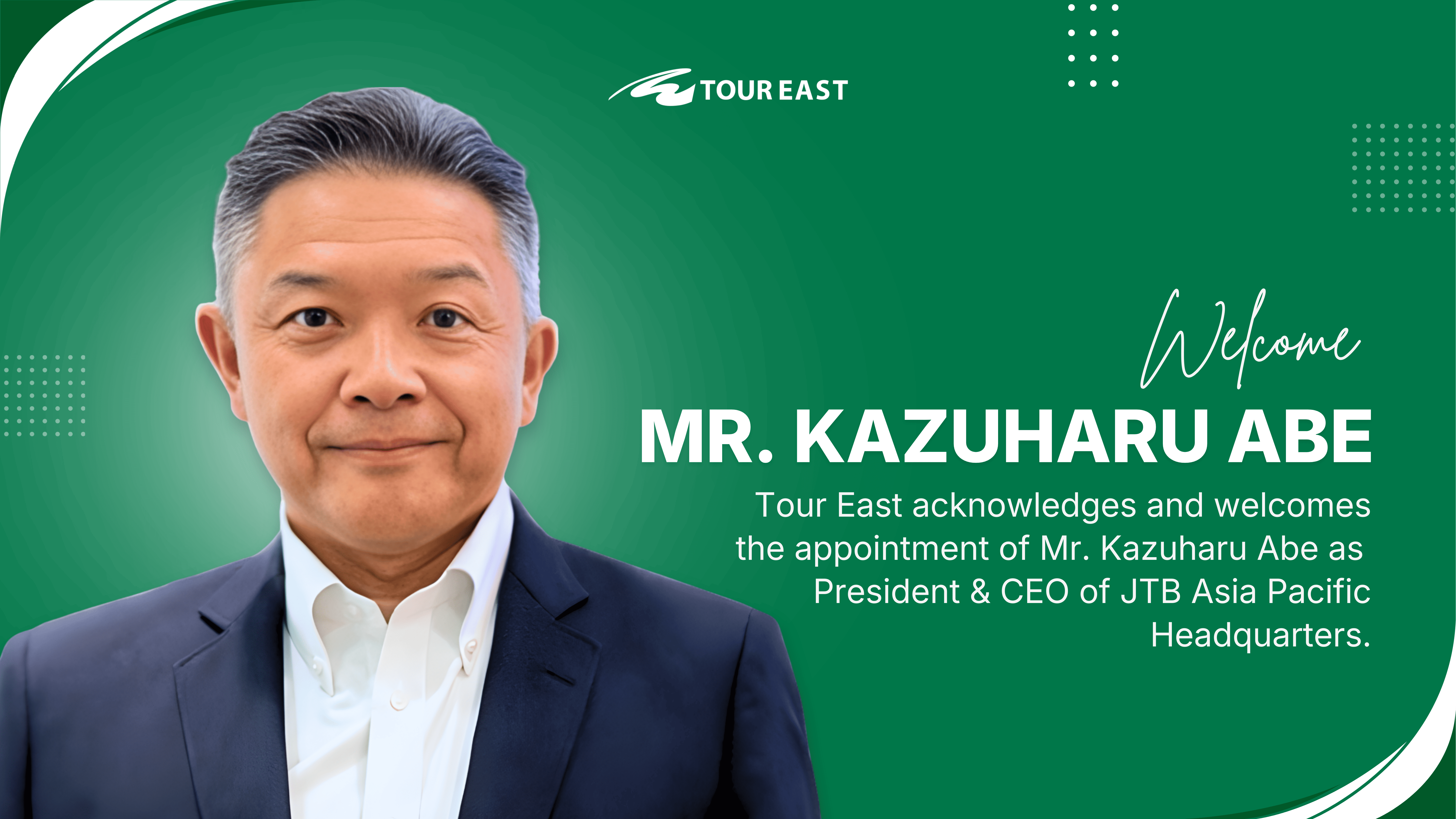Tour East welcomes Mr. Kazuharu Abe on his appointment as President & Chief Executive Officer of JTB Asia Pacific Headquarters (APHQ), as the JTB Group begins the year ahead.