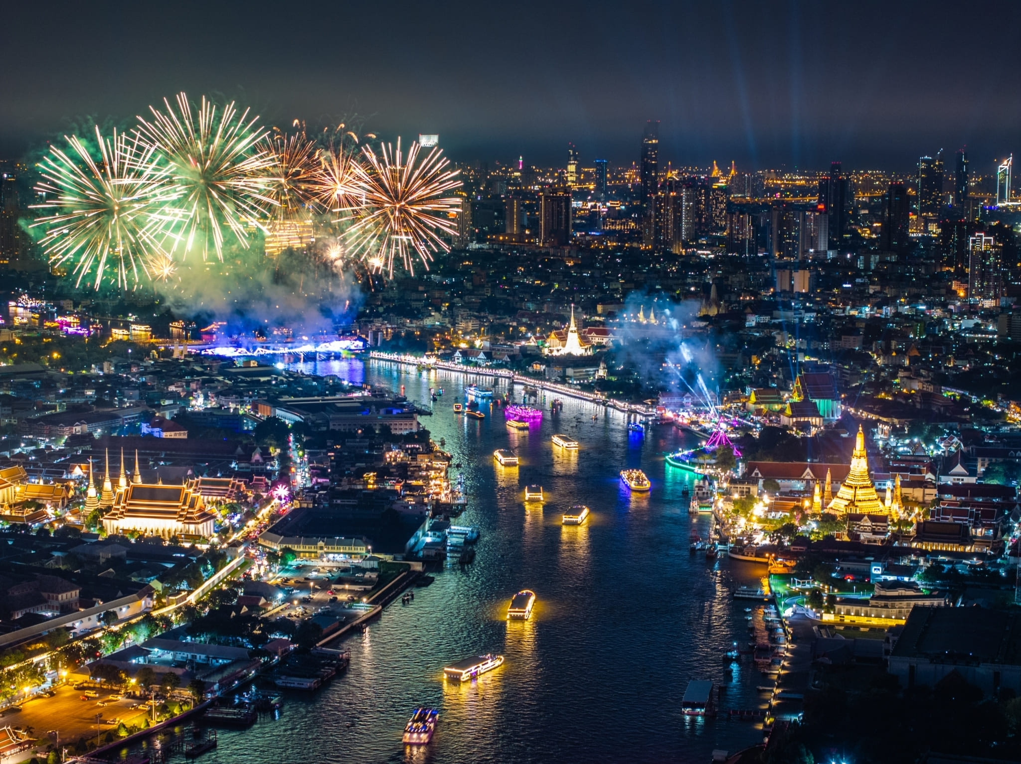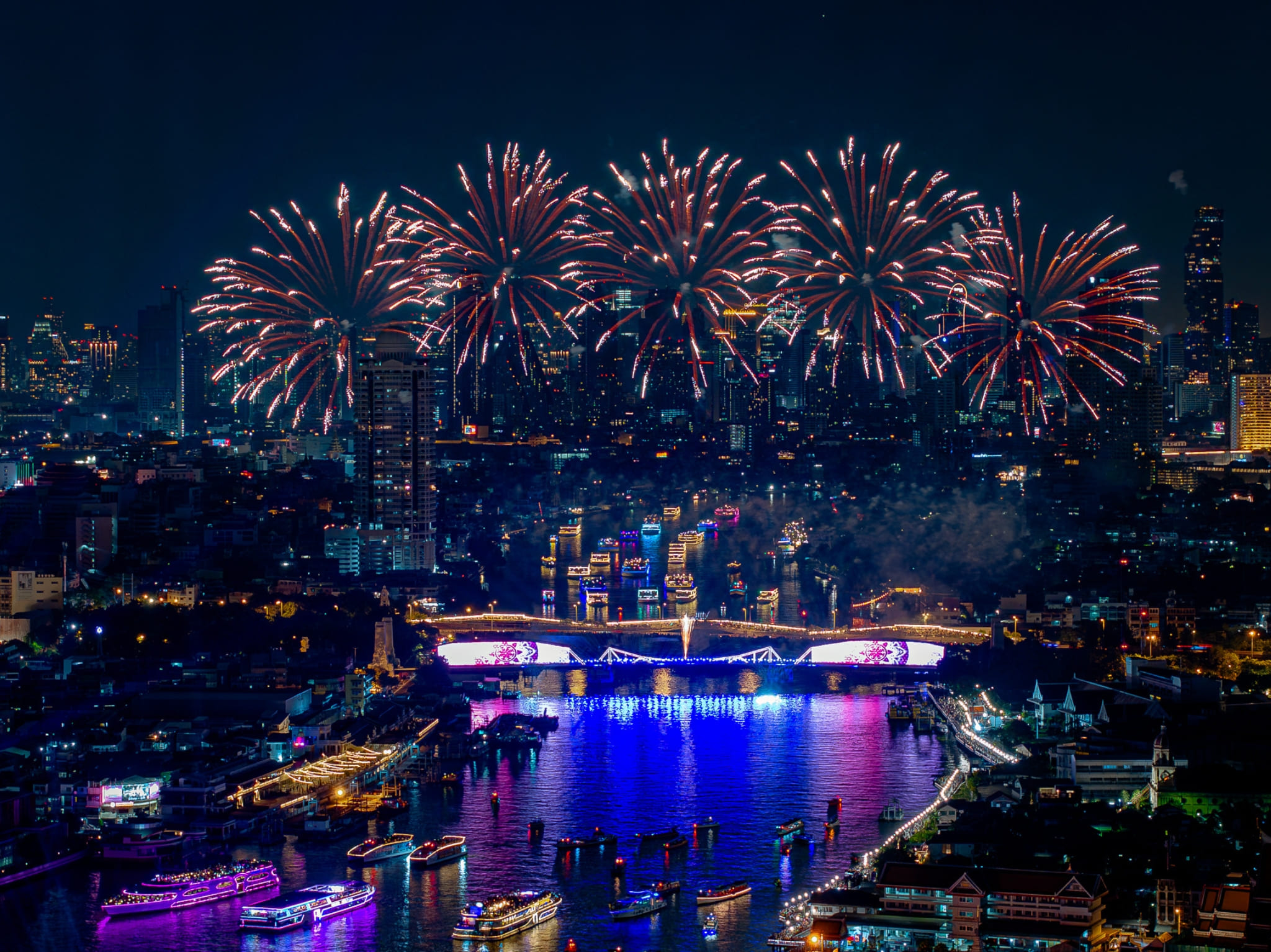 Best Viewing Areas: ICONSIAM, Asiatique, Rama VIII Bridge, Wat Arun Pier.